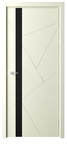 Дверь Геометрия-6 ширина 80 см Слоновая кость Эмаль Стекло черное кромка В цвет полотна в Сургуте