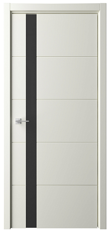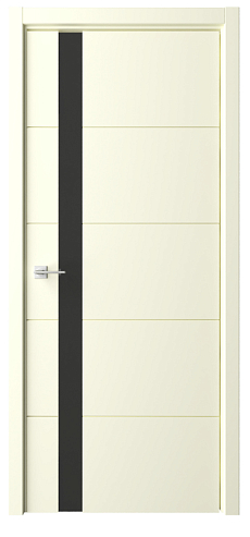 Дверь Геометрия-7 ширина 80 см Слоновая кость Эмаль Стекло черное кромка В цвет полотна в Сургуте